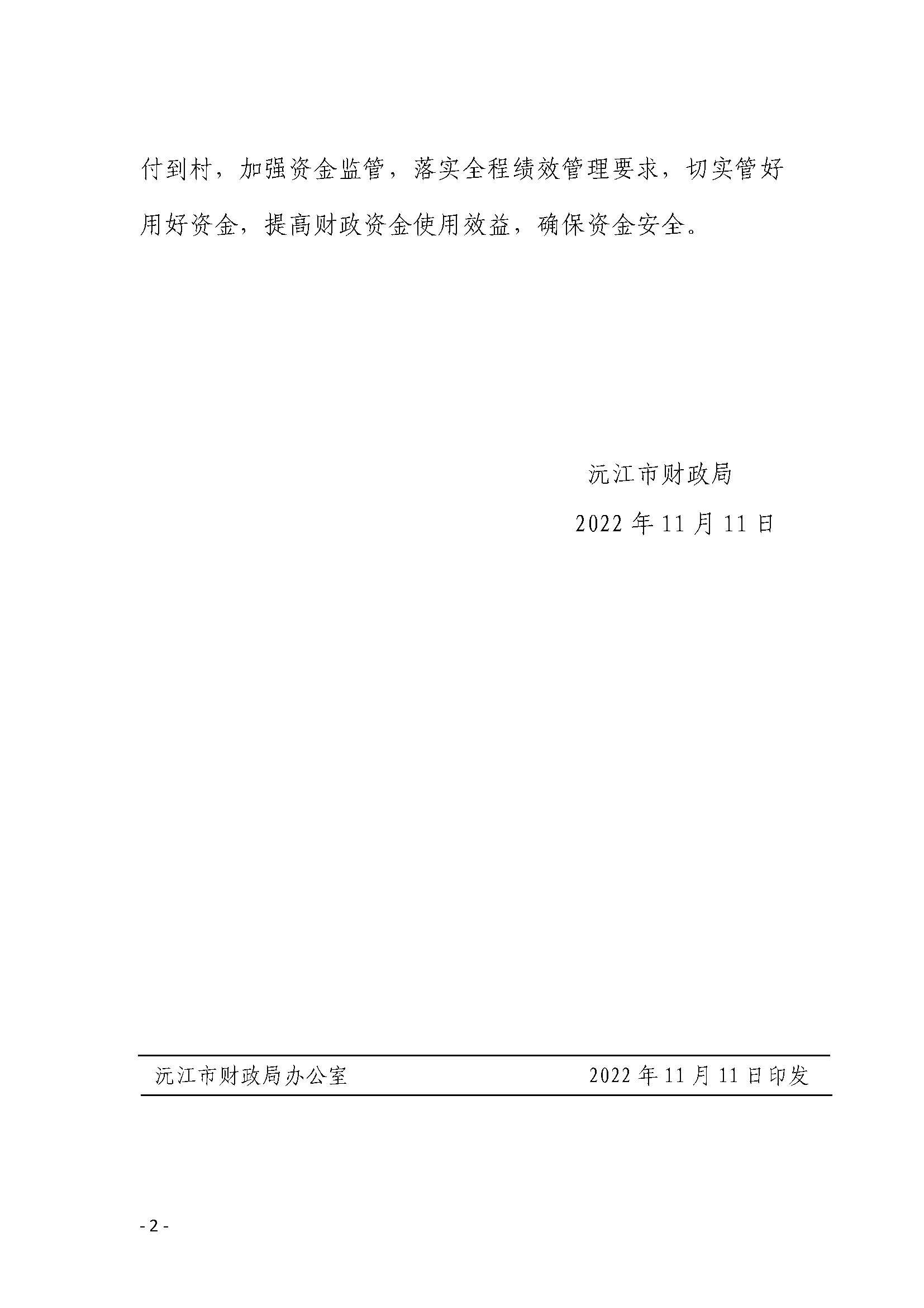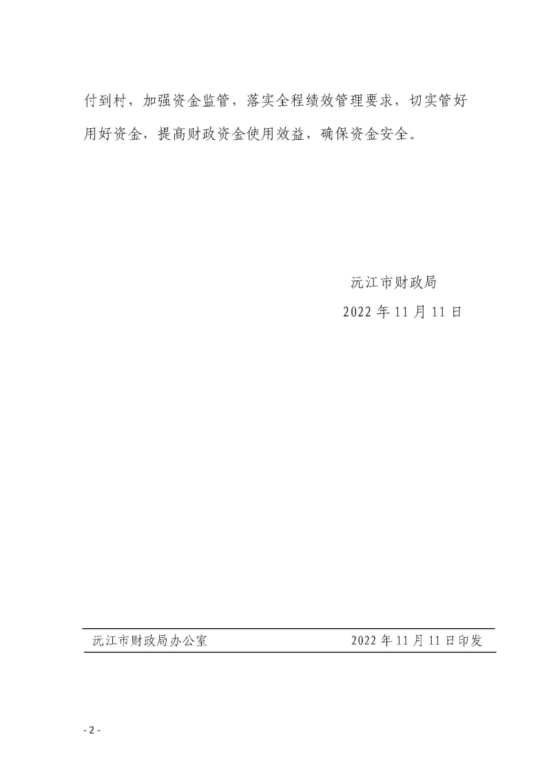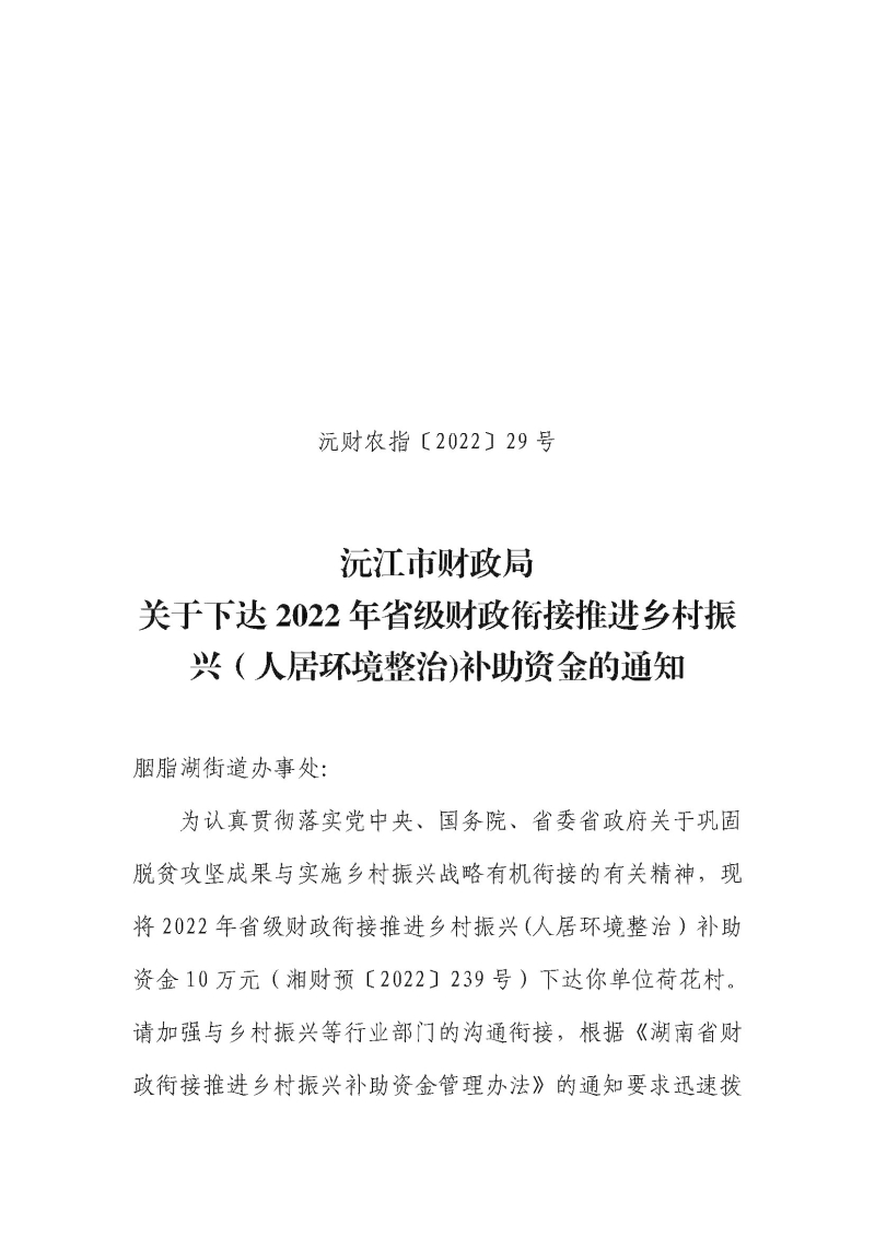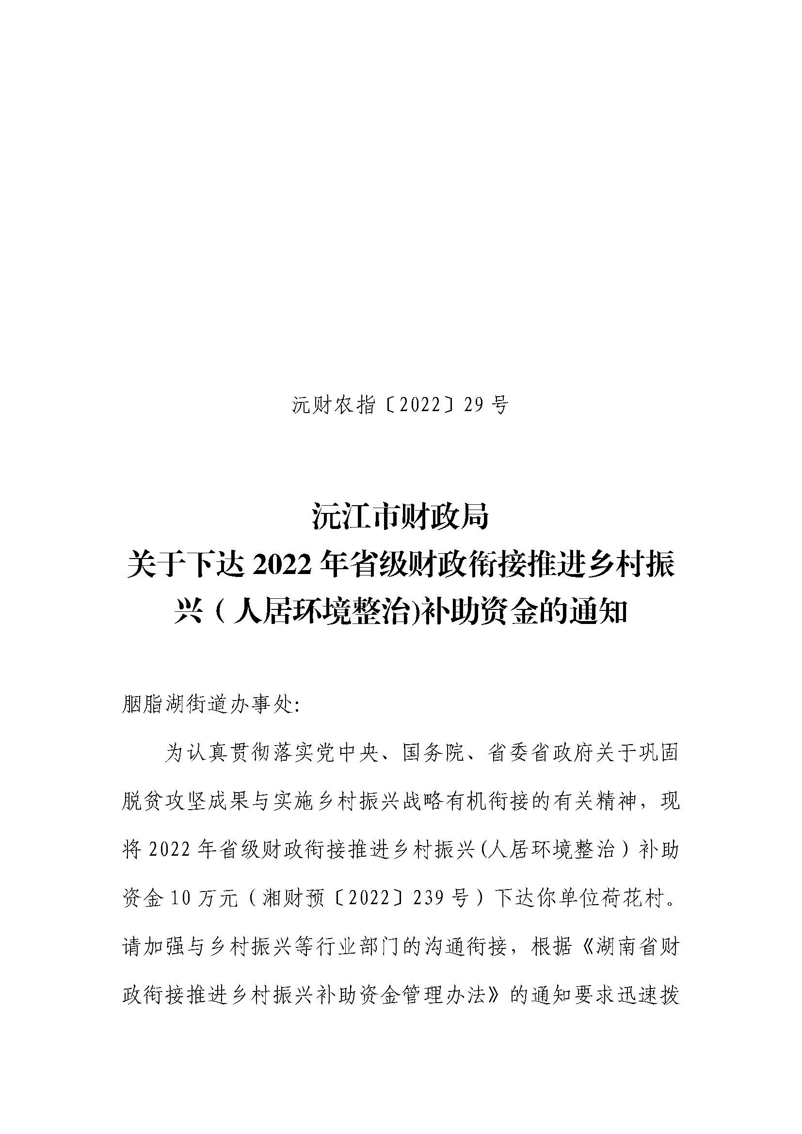 沅财农指〔2022〕29号 沅江市财政局关于下达2022年省级财政衔接推进乡村振兴补助资金的通知