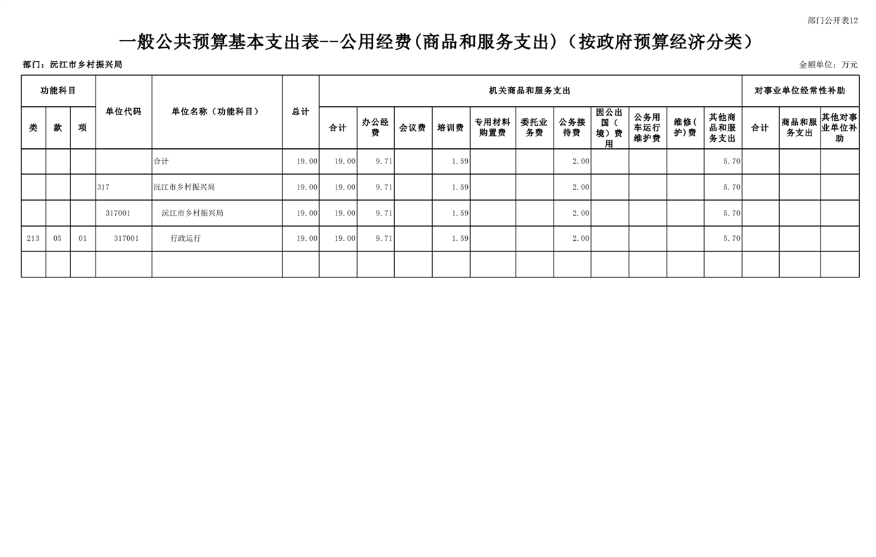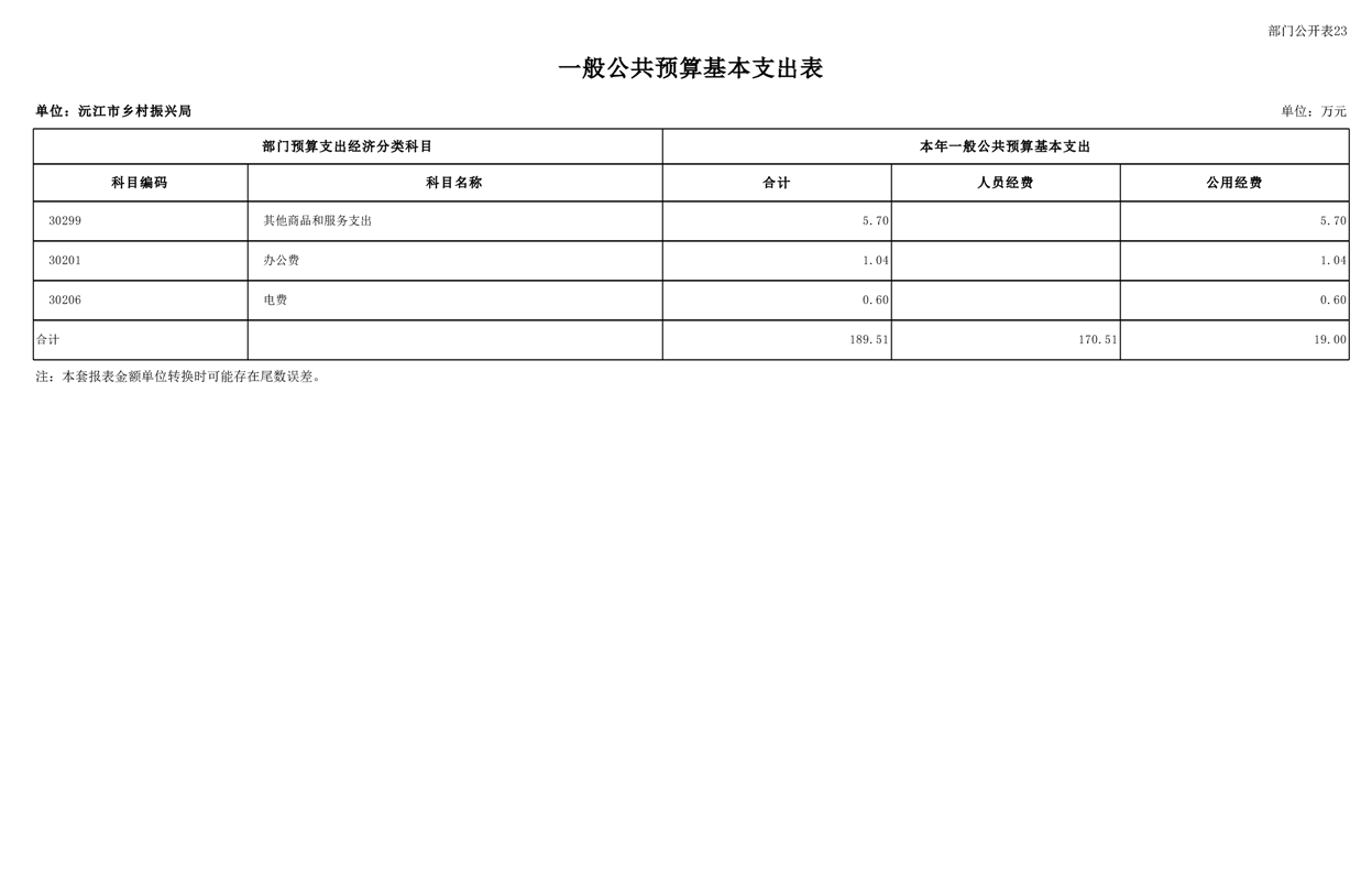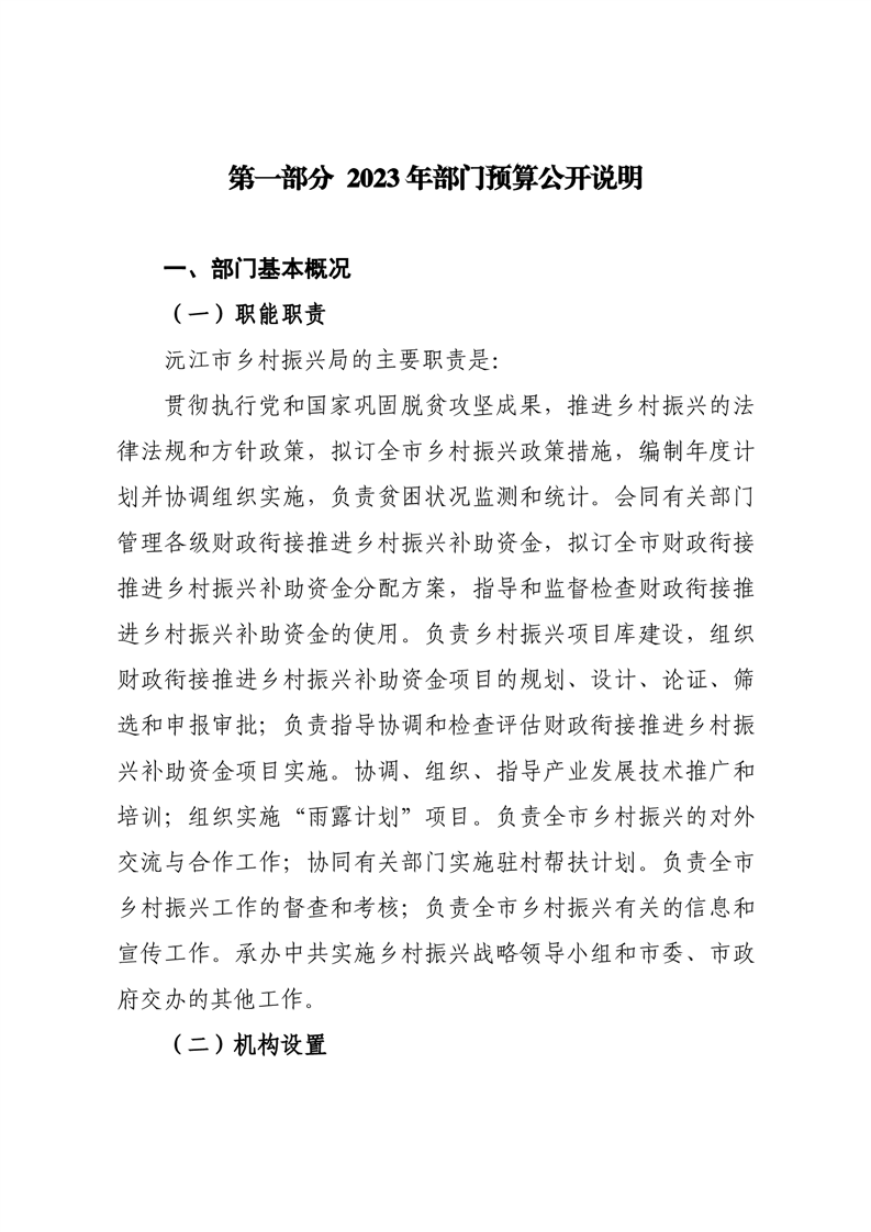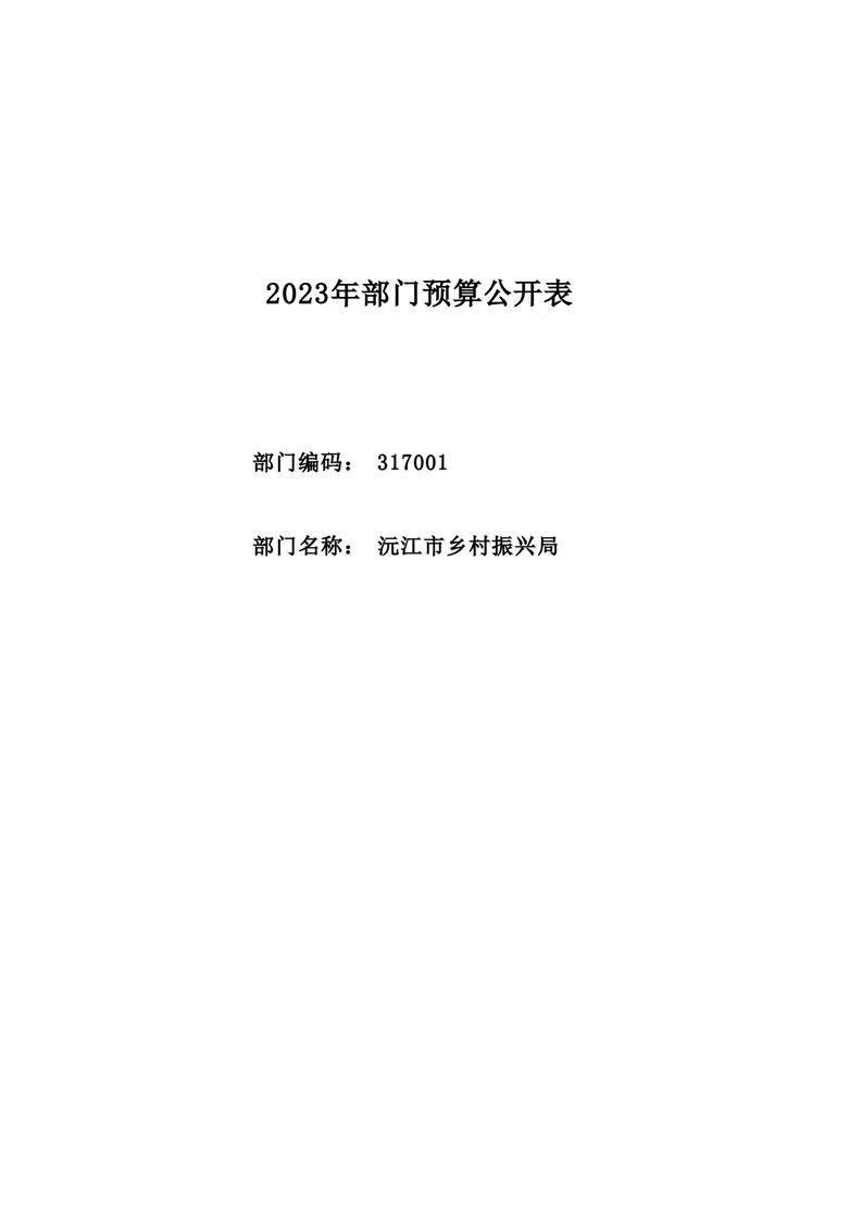 2023年沅江市乡村振兴局部门预算公开