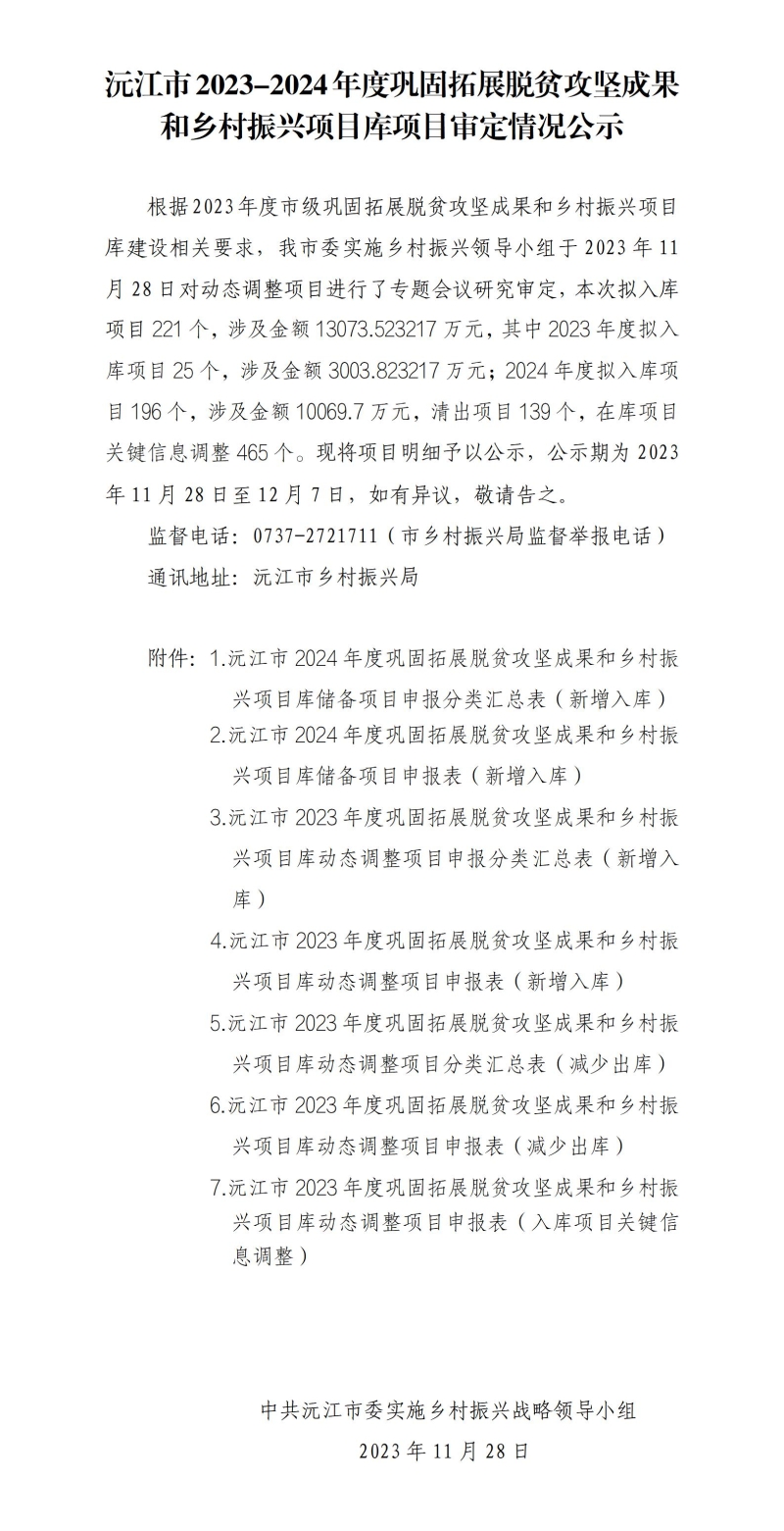 7.沅江市2023年巩固拓展脱贫攻坚成果和乡村振兴项目库动态调整项目申报表(入库项目关键信息调整).xlsx