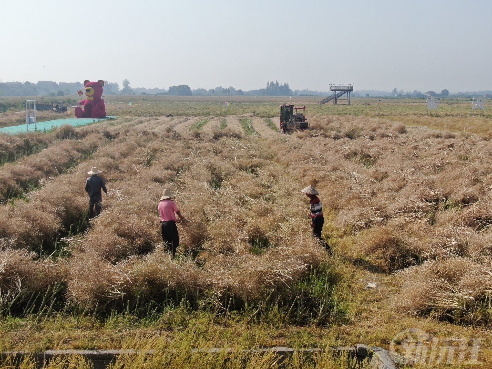 在琼湖街道保民村的千亩油菜基地,种植大户王剑良正指挥农机手抢收油菜。得益于今年春季充足的光照和温和的气候,他的油菜籽粒饱满、出油率高,亩产预计突破300斤,部分地块甚至达到400斤以上。