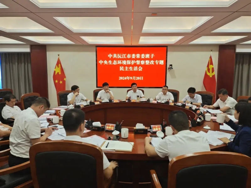 9月20日,沅江市委常委领导班子召开中央生态环境保护督察整改专题民主生活会。会议以“学深悟透习近平生态文明思想,切实扛牢生态文明建设政治责任,推动中央生态环境保护督察整改走深走实”为主题,凝聚齐抓共管的强大合力。市委书记杨智勇主持并讲话,益阳市纪委监委、益阳市委组织部有关同志到会指导并作点评。