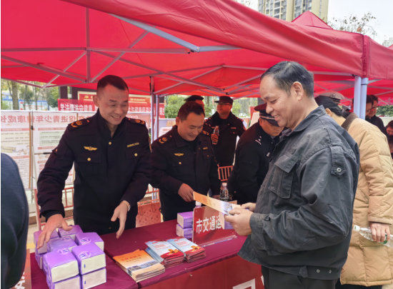 活动现场设置了咨询服务台、政策展示板,工作人员身着统一制服,向过往群众和企业代表发放《中华人民共和国宪法》节选读本、交通运输行业惠企政策汇编等宣传资料,重点解读宪法中关于市场主体保护的相关条款,以及货运车辆许可、网约车管理、物流降本增效等领域的便民利企政策。