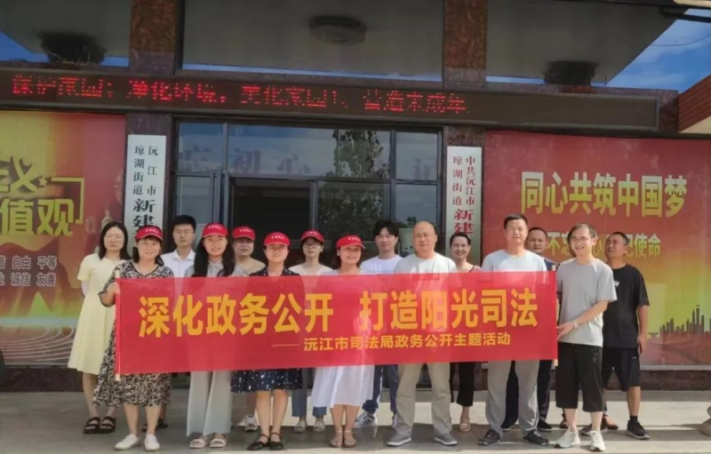 7月21日上午,沅江市司法局组织全体机关干部进新建社区开展以“深化政务公开 打造阳光司法”为主题的调查问卷活动,了解群众对司法行政工作的知晓率、参与率和满意率,进一步搭建司法行政与群众沟通的桥梁。
