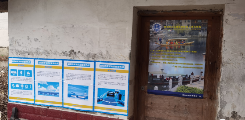 检查小组对辖区内渡口的安全标识标牌逐一进行检查,并上船查看了船舶证件、救生消防设施等,通过与船员沟通交流,对渡口的客流量、日常运行监管、安全生产等情况进行了解。累计摸排渡船31艘,对不符合标准的标识标牌现场督查指导。同时还组织工作人员前往五花洲、徐家岭、黄土包等渡口宣传、粘贴《益阳市渡运安全管理办法》,进一步增强船主及当地群众的水上交通安全意识。目前共开展宣传34次,张贴海报51份,发放宣传手册210册,为230余名渡运群众宣传渡船安全知识。