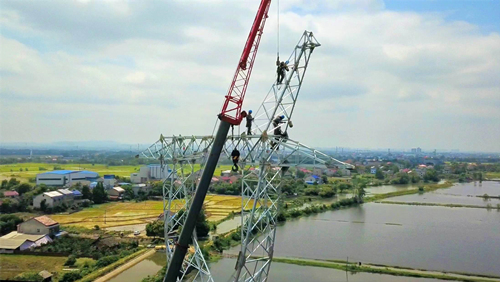 目前,该工程已完成全部基础施工任务和98%的铁塔组立任务,每天有20多个施工班组、40多个作业面、近500名作业人员同步开展现场作业,各类机械化施工设备的投入,有效压降施工风险,为工程建设如虎添翼。