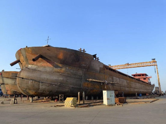 湖南桃花江游艇制造有限公司正在建造的5000吨级散货船。