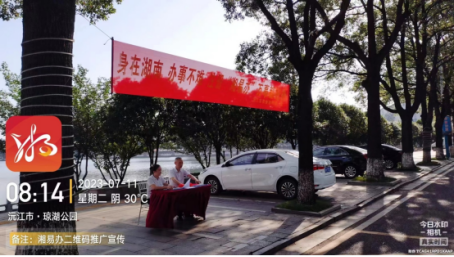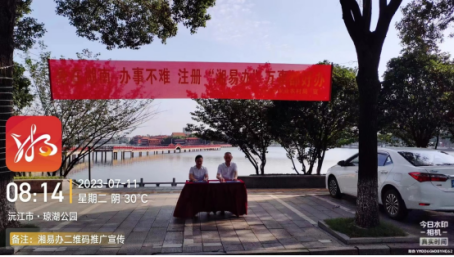 7月11日,农业农村局政务服务窗口工作人员在湖心公路开展“湘易办App”宣传推广活动。