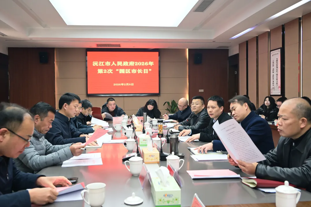 2月8日,沅江市委副书记、代理市长廖江华组织开展市人民政府2026年第2次“园区市长日”活动,深入园区走访调研,面对面倾听诉求,实打实破解难题。副市长谢贵,沅江高新区党工委书记彭龙、管委会主任梁成伟参加。