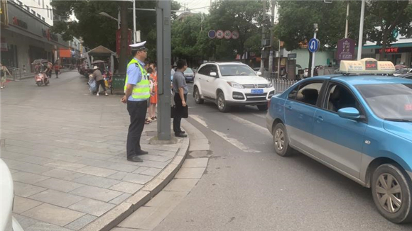 从5月30日开始,沅江城区十字交叉路口和学校周边斑马线,总有一抹亮丽的荧光绿守护在那,从早到晚,指挥交通,开展劝导行人按交通指示通行,自觉走斑马线。