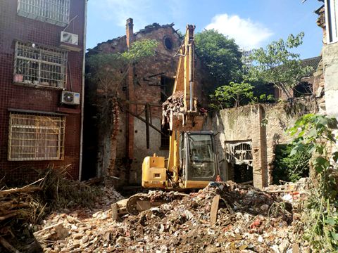 由于此地属于沿河路旧城改造地域,原沅江饭店废弃近30年,为了杜绝安全事故周围砌墙,后面则是湘中渔具厂住宿区和庆云山派出所地坪有二道围墙,西北面是一建公司家属区,地理位置特殊,形成了一个“四合院”现在正值夏季,现场蚊虫横飞、臭气熏天,而这个垃圾堆则是一建公司家属区里居民常年丢弃形成的。30年的陈年垃圾近300吨,昨日租了8台手拖已经拖走垃圾48车,今天又租了9台手拖继续清运,大约耗资近3万元。