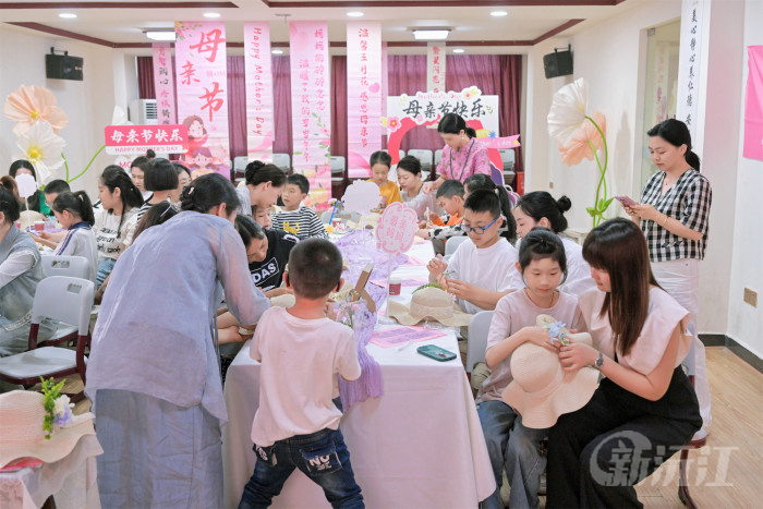 随后,工作人员详细讲解草帽制作步骤,并分发材料工具。大家迅速投入创作,母亲耐心指导,孩子认真配合,共同构思设计。大家充分发挥创意,用色彩斑斓的颜料、娇艳的花朵精心装饰草帽。活动现场气氛热烈,其乐融融,一顶顶独一无二的“美帽”在亲子协作中诞生,承载着彼此最深的爱意与祝福。