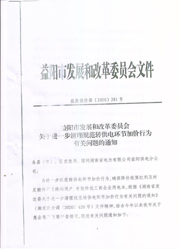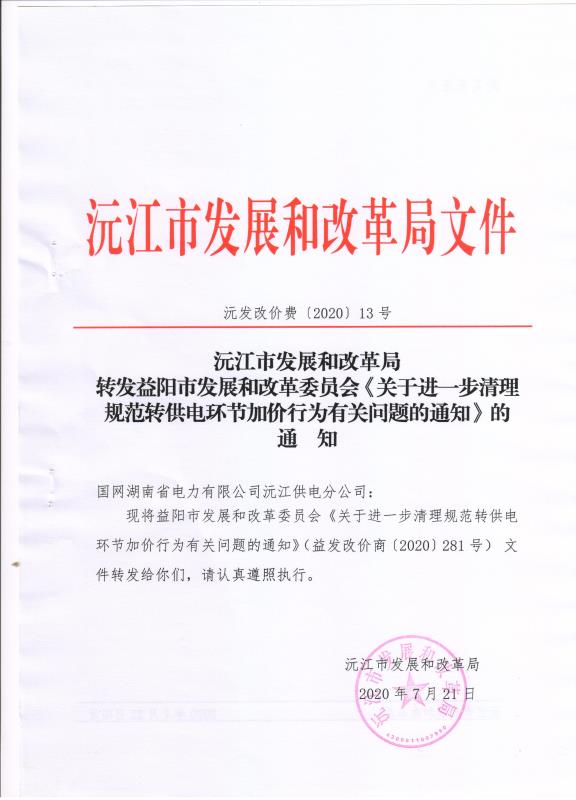 关于进一步清理规范转供电环节加价行为有关问题的通知