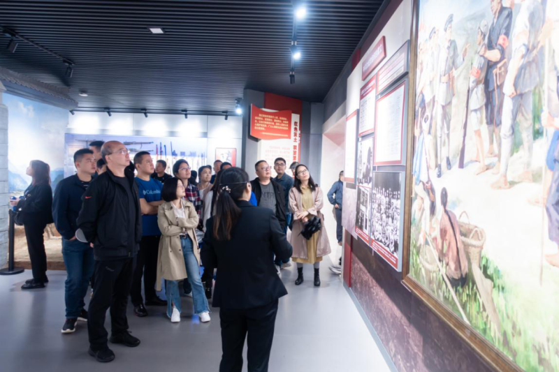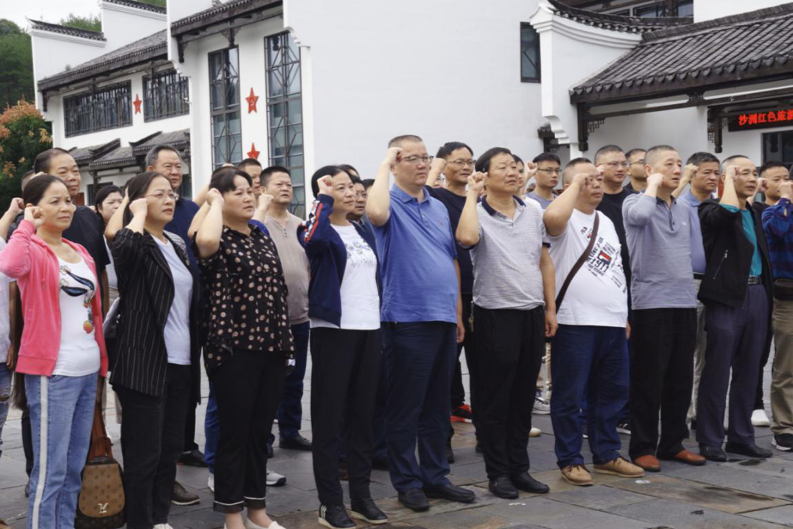 寻着历史的足迹,感受中国工农红军的赤子情怀。全体党员在鲜红的党旗前重温入党誓词,铿锵有力的宣誓声响彻广场;在沙洲村陈列馆驻足观看革命文物、宣传图片,回望红军长征血与火的峥嵘岁月,近距离感受革命先烈为穷苦大众谋幸福和为中华民族得解放奋斗所付出的巨大牺牲。