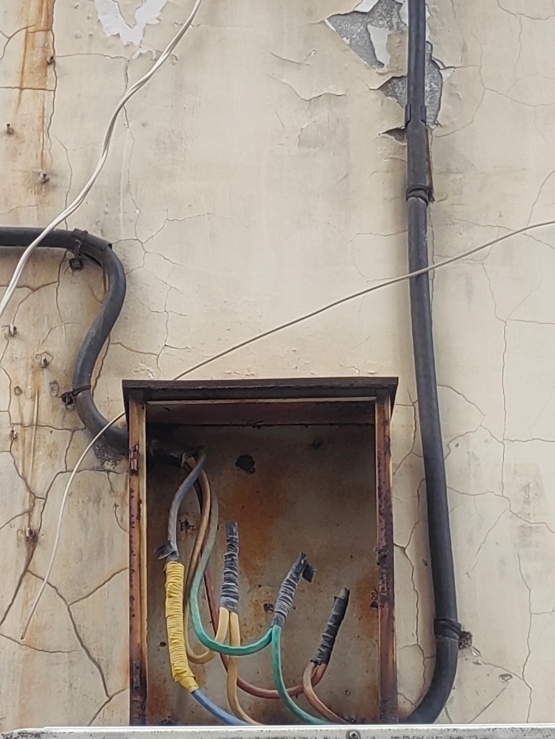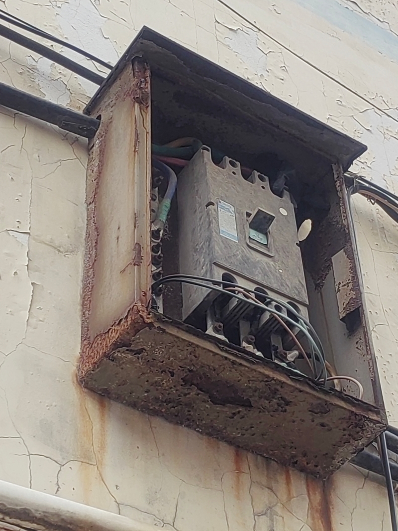 政府,您好,我们这里是金富城新建社区原沅江纸厂拆迁户1栋居民哥,现发现附着在一栋东侧墙上的总电源开关,及分支箱的箱门都不翼而飞,且严重锈蚀,值用电高峰时候,存在极大的安全隐患,给居民人身及财产带来极大的潜在威胁,。本着事前预防,不浪费事后公共资源的原则,诚请政府解决相关问题。感谢为敬!